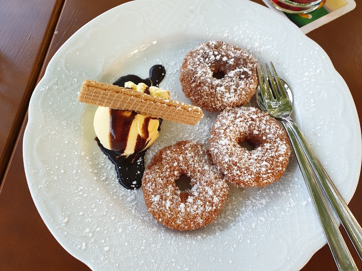 One of the standout dishes at Restaurant Theater-Eck is their Cider. This refreshing beverage pairs perfectly with many of their signature meals, providing a crisp and fruity contrast to the flavors. For those with a sweet tooth, the Apfelküchle is a must-try. This classic German dessert features a delicious apple fritter that’s crispy on the outside and tender on the inside, offering the ideal balance of sweetness and texture.